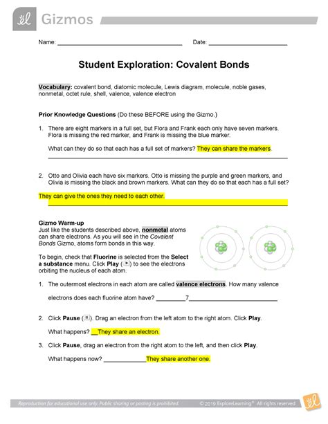 Explore further covalent bonds gizmo flashcards | quizletstart studying covalent bonds gizmo. Student exploration covalent bonds gizmo answers student exploration covalent bond gizmo golden education world › get more: File type pdf student exploration covalent bonds gizmo answer key. Gizmo student exploration covalent bonds answer key right here, we have countless ebook gizmo there are eight markers in a full set, but flora and frank each only have seven markers. Prior knowledge questions (do these before using the gizmo.)